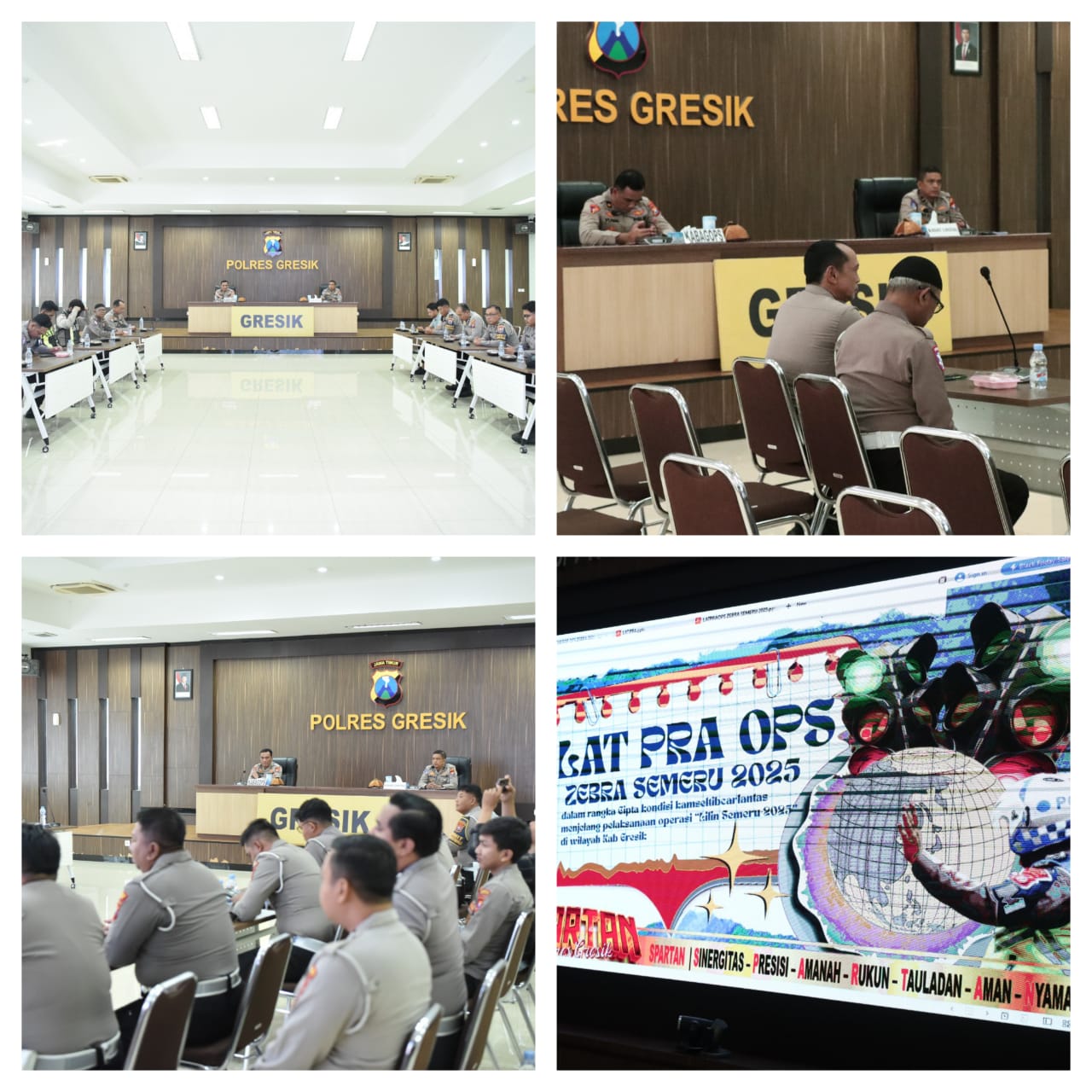 Menjelang pengamanan arus lalu lintas akhir tahun, Kepolisian Resor (Polres) Gresik menggelar Latihan Pra Operasi (Lat Pra Ops) Zebra Semeru 2025 sebagai upaya memantapkan kesiapan personel dalam menciptakan situasi tertib dan aman di jalan raya. Kegiatan berlangsung di Rupatama Sarya Arya Racana, Mapolres Gresik, pada Jumat pagi (14/11/2025).