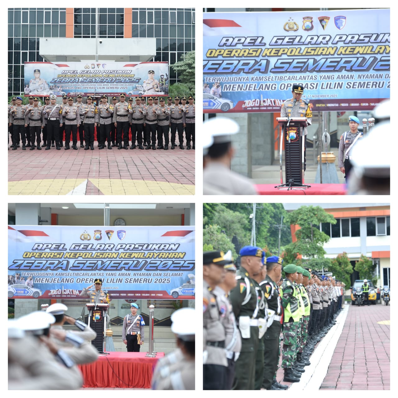 Peserta apel meliputi personel Sat Samapta, Sat Lantas, Gabungan Staf, Satpolairud, Sat Intelkam, Sat Reskrim, Sat Narkoba, hingga unsur pendukung dari TNI dan Pemkab Gresik. Rangkaian kegiatan diawali pemeriksaan pasukan, laporan resmi, serta penyematan pita tanda dimulainya Operasi Zebra Semeru 2025.
