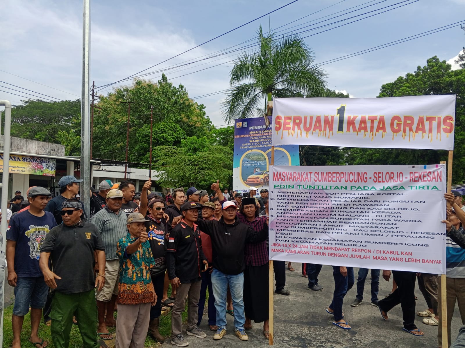 Dengan dikawal oleh Lembaga Komunitas Masyarakat Pemerhati Pelayanan Publik Anti Koruptor (KOMPPPAK) ratusan warga masyarakat memadati pintu masuk Bendungan untuk menyampaikan keluhan sekaligus menandatangani petisi dukungan sebagai protes keras terhadap management pengelola dari pihak PJT I.